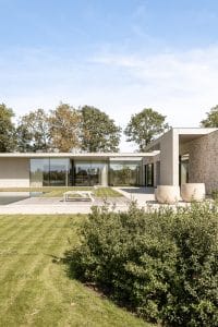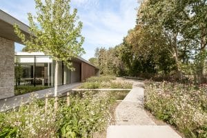 Hier plaatsten we een geothermische warmtepomp dewelke de woning van verwarming, sanitair warm water én passieve koeling voorziet.