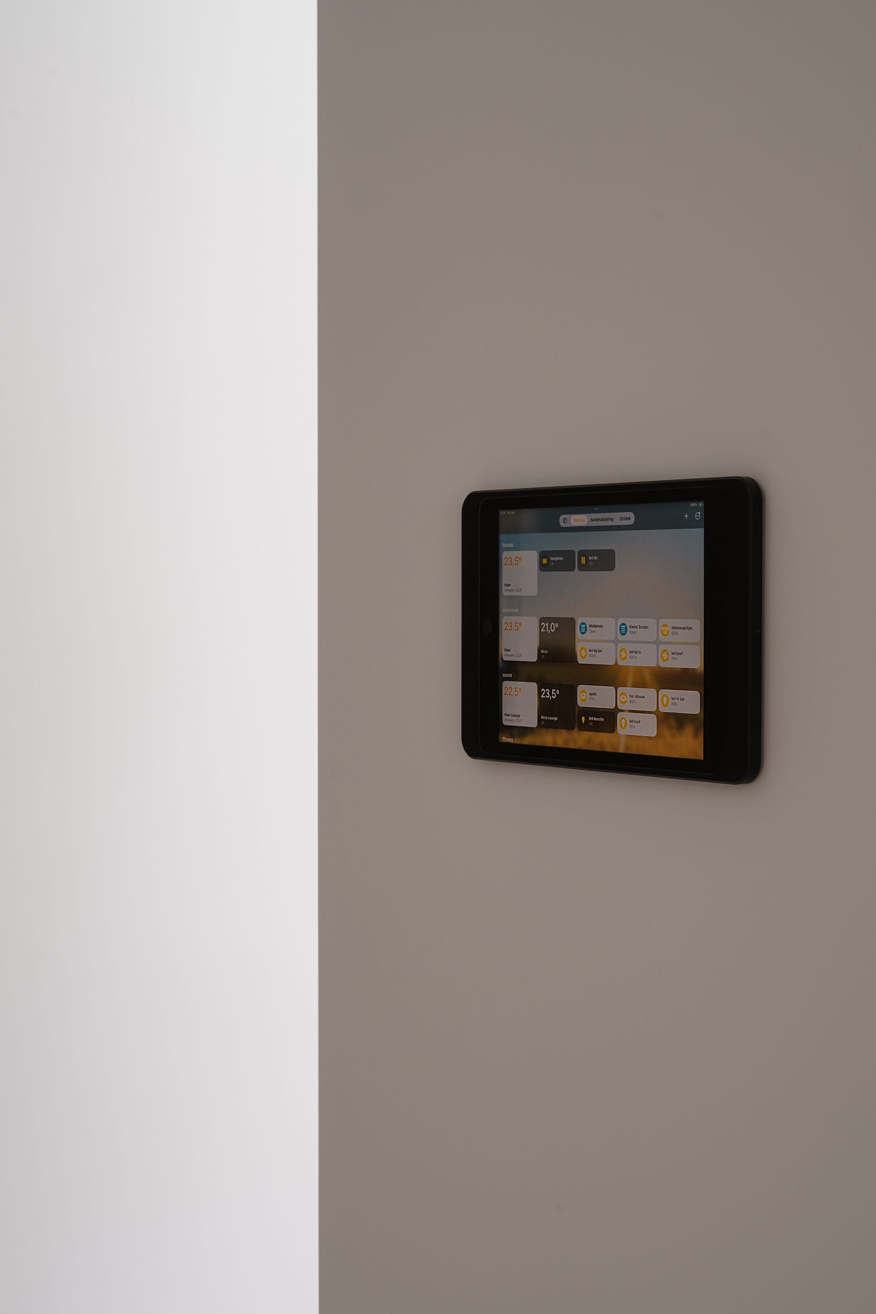 De technische ruimte werd voorzien van de geothermische warmtepomp, extra boiler (in deluxe opstelling) en buffervat dewelke de woning van verwarming, sanitair warm water én passieve koeling voorziet.
